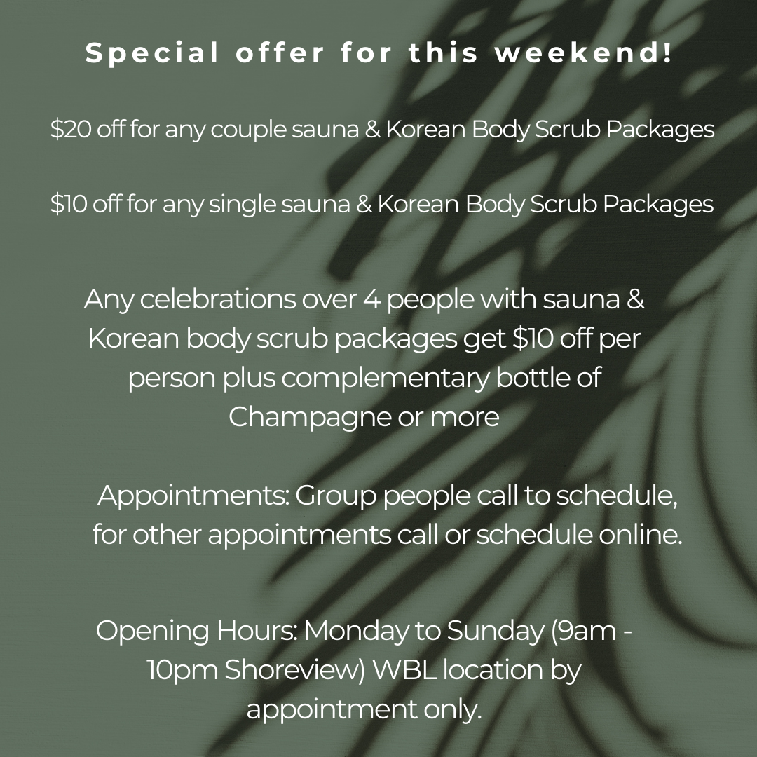 $10 off for any single sauna & Korean Body Scrub Packages