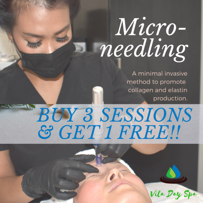 Buy 3 Session of Micro needling Get 1 Free!! – Offer Valid For White Bear Lake Location Only!!–Purchase 3 Micro-Needling services for $840.00 and get 1 free.– Free complementary bottle of Wine for couples day spa packages at either Shoreview or White Bear Lake Location! –Please call our store for more information.